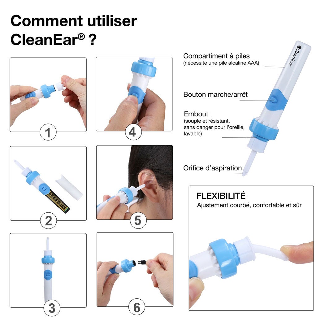 CleanEar® aspire 95% du cérumen sans douleur, libère vos oreilles et offre paix et clarté à toute la famille.
