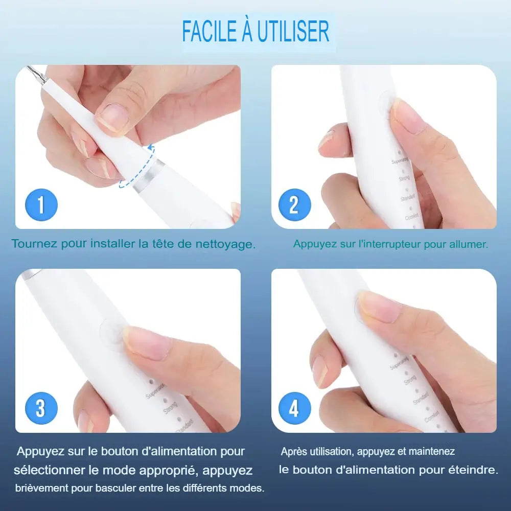 Vibrazioni puissantes éliminent souillures, pour un sourire confiant sans complexe.